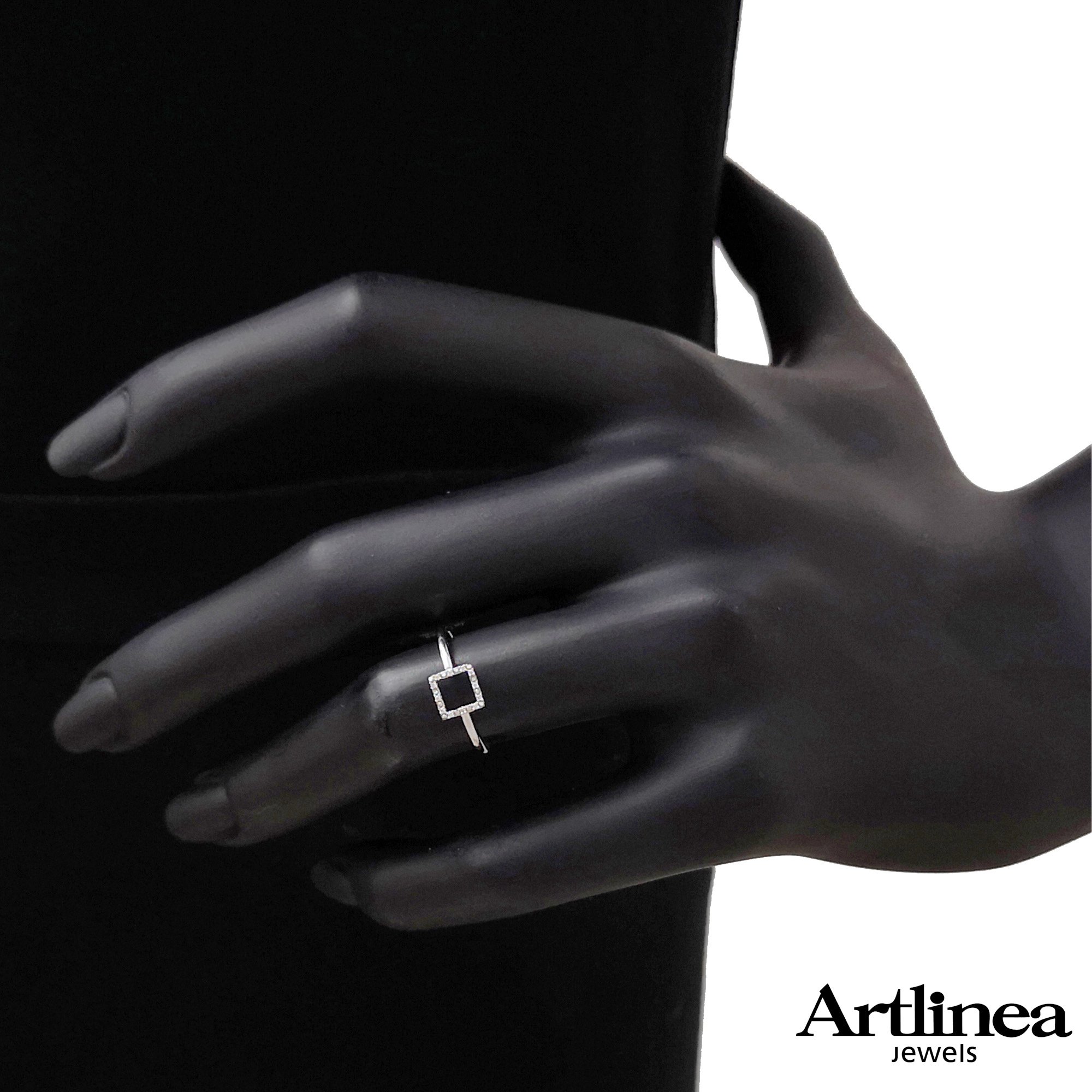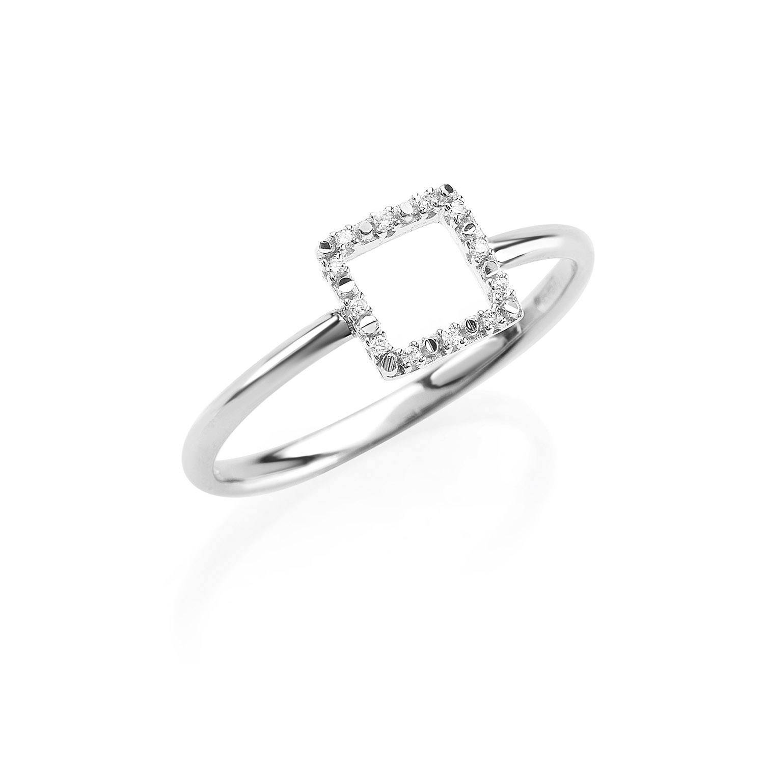 Anello donna artlinea oro bianco 18 kt 750 diamanti quadrato misura 13