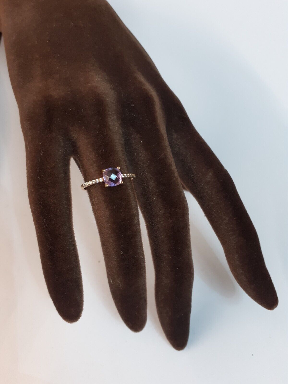 ametista viola sfaccettata e zirconi bianchi incastonati a grif