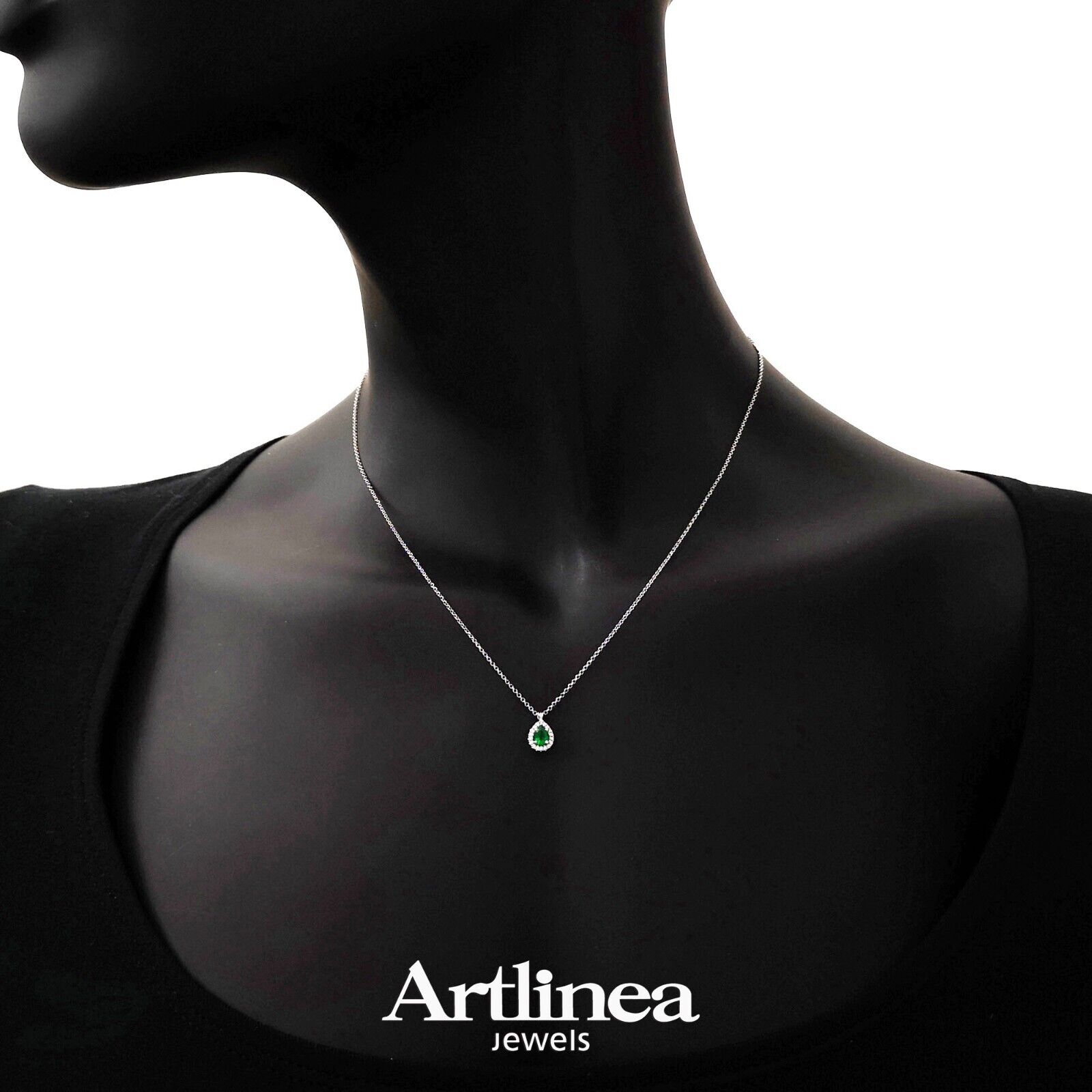 Collana oro bianco 750% 18 kt diamanti smeraldo verde artlinea punto luce goccia