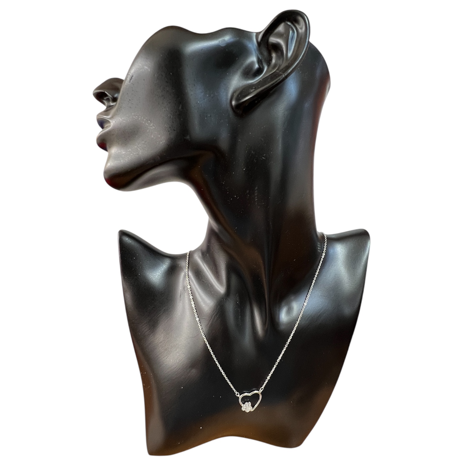collana donna in argento 925% anallergico rodiato lunghezza catena 42 cm + 3 cm allungatore ciondolo 1,5 x 1,3 cm zirconi incastonati