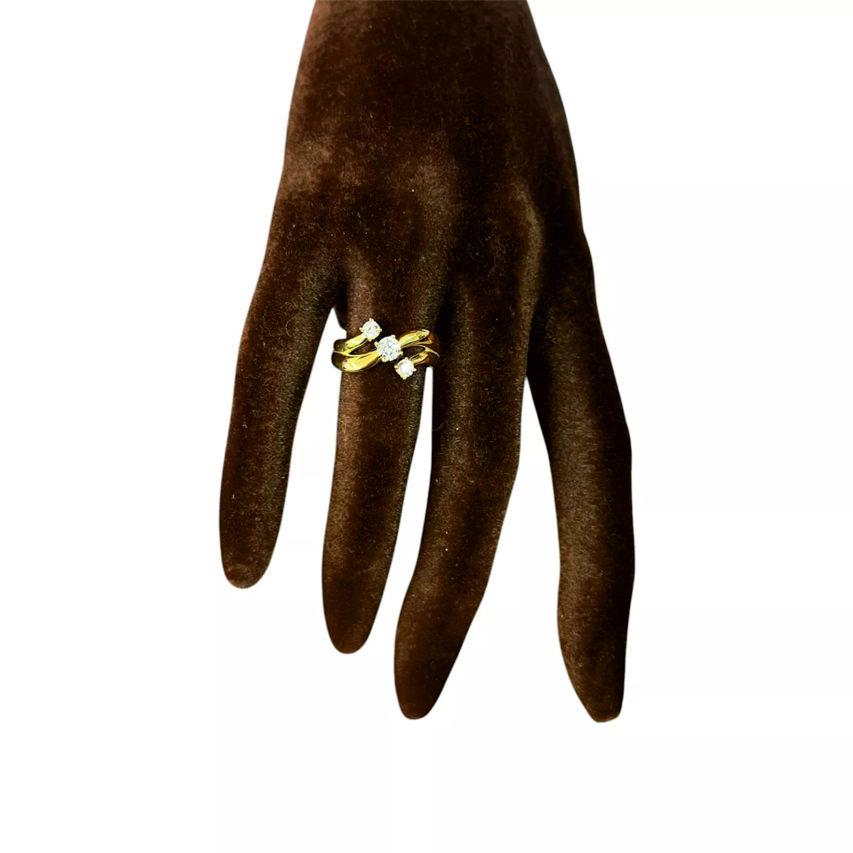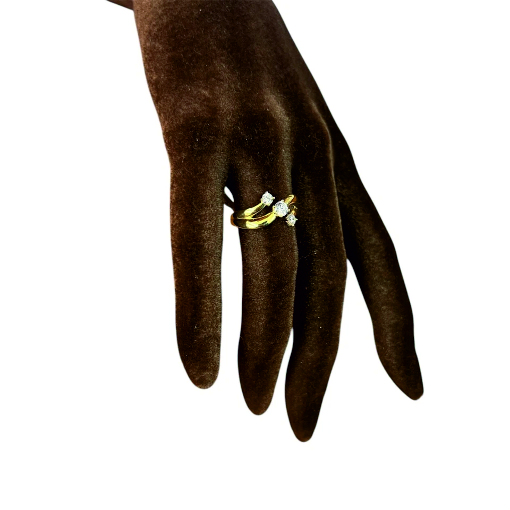 bellissimo anello donna oro giallo 18 kt 750% trilogy con 3 zirconi incastonati
