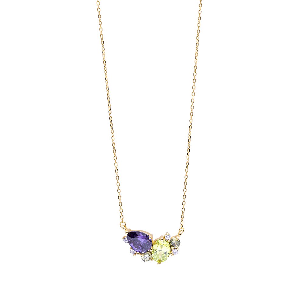 collana in argento 925‰ rodiato con zirconi bianchi viola e verde