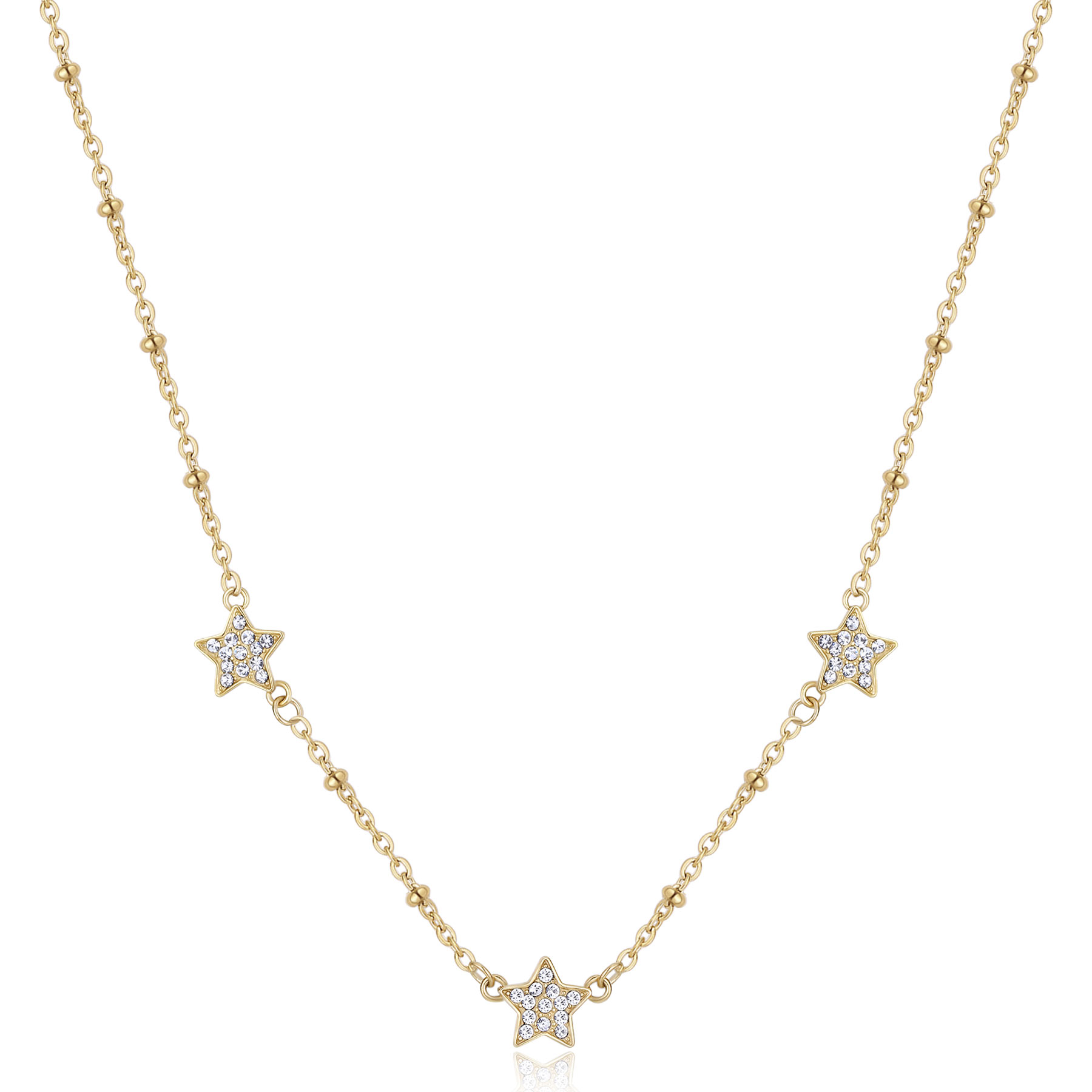 Collana Girocollo con Stelle e Cristalli – Acciaio Inossidabile 316L Giallo